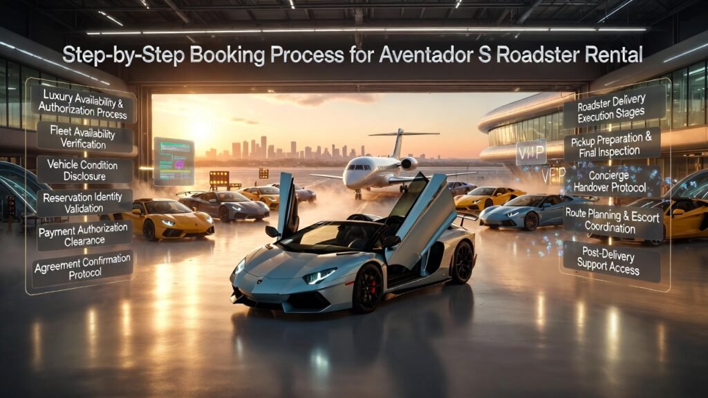The booking process for Aventador S Roadster rental is inspection-aligned by design. Every booking stage either preserves or weakens inspection authority.